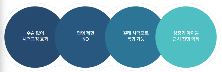 | 근시 진행 | 근시 진행 억제 효과를 기대할 수 있음 | 효과가 영구적이지 않음 (착용을 중단하면 원래 상태로 돌아감) |