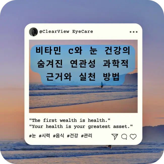 비타민 C가 눈 건강에 미치는 영향을 과학적 근거와 함께 살펴봅니다. 항산화 작용, 백내장 예방, 녹내장 위험 감소 등 비타민 C의 다양한 효과와 일상에서의 실천 방법을 소개합니다.