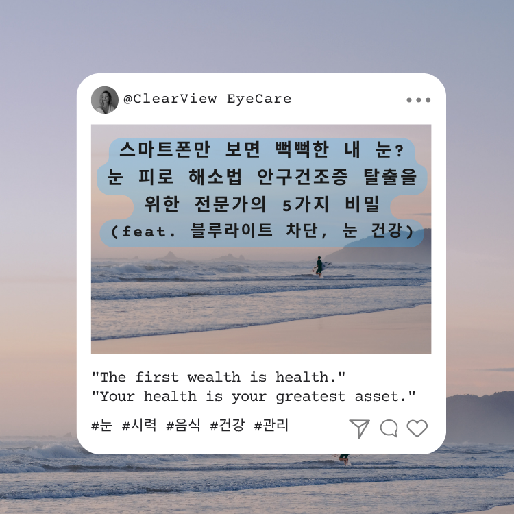 매일 스마트폰과 컴퓨터로 고통받는 당신의 눈! 안구건조증과 눈 피로 해소법, 더 이상 미루지 마세요. 블루라이트 차단부터 눈 건강을 지키는 5가지 핵심 비법을 지금 바로 확인하세요.