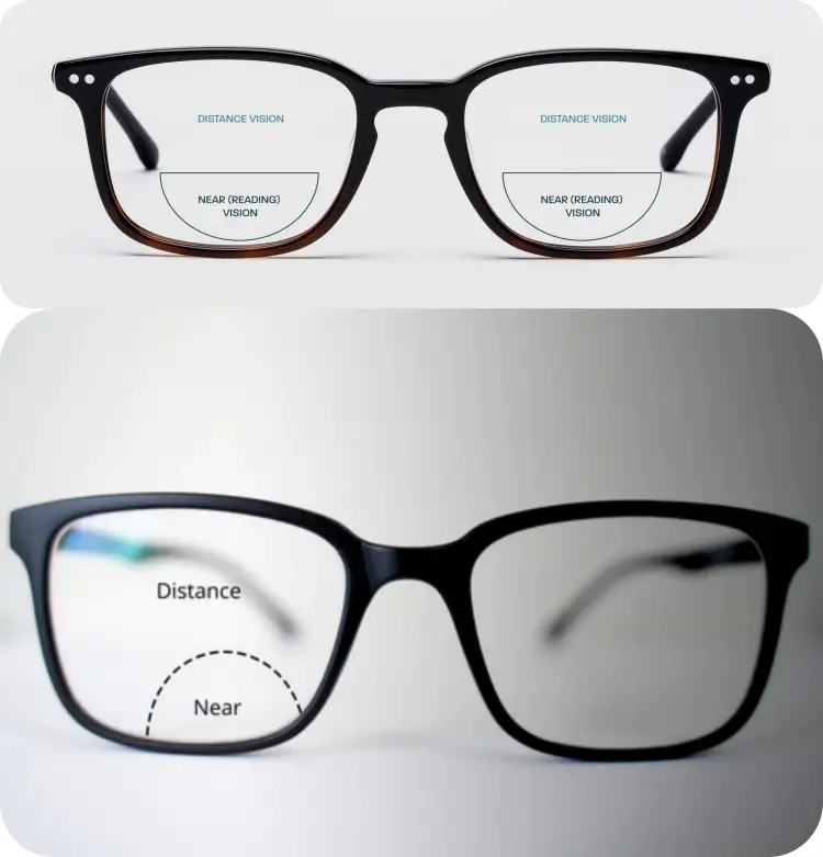 1780년대 벤자민 프랭클린(Benjamin Franklin)은 원거리 시력과 근거리 시력에 문제가 있어서 원거리용 안경테, 근거리용 안경테 따로 가지고 있으면서 필요할 때 번갈아가며 착용했습니다. 그런데 이러한 과정이 귀찮고 좌절감을 느낀 그는 렌즈를 반으로 잘라서 위쪽에는 원거리용 렌즈를 아래쪽에는 근거리용 렌즈로 결합해서 안경테에 넣어서 사용하게 되었습니다.