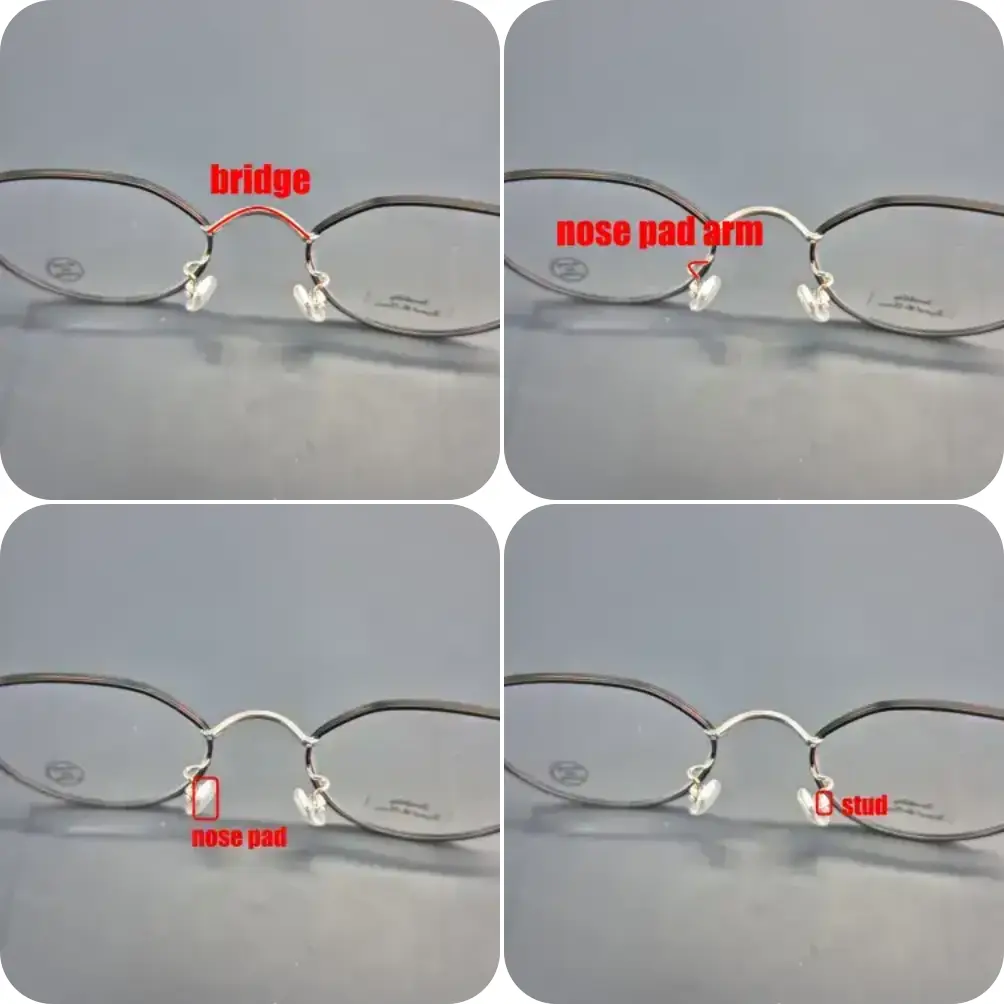 2) nose pad arm / stud / nose pad / bridge