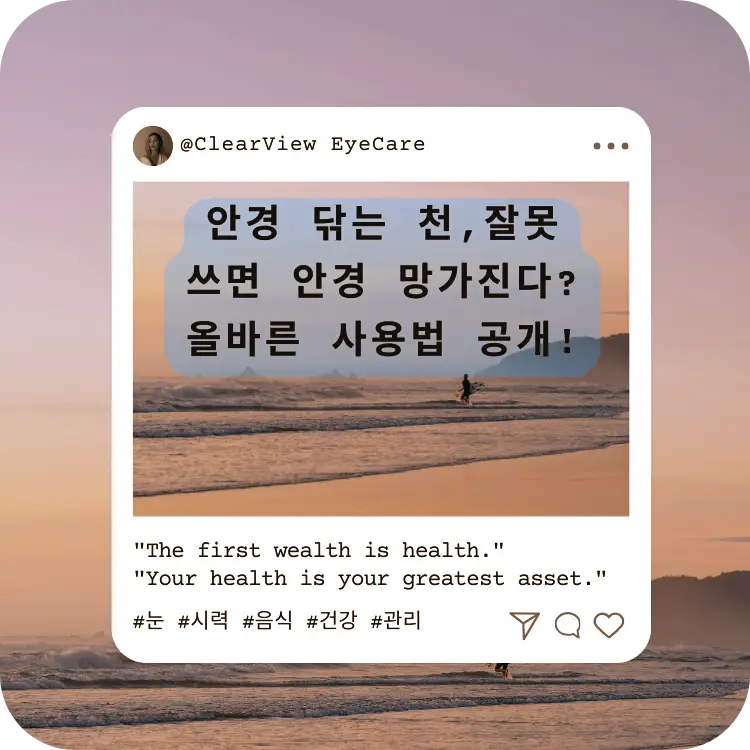 안경 닦는 천은 단순한 도구가 아닙니다. 안경 렌즈를 보호하고 수명을 연장하는 핵심적인 역할을 합니다. 잘못된 사용은 렌즈 손상을 유발할 수 있지만, 올바른 방법으로 사용하면 안경의 성능과 수명을 유지할 수 있습니다.