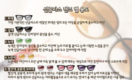 선글라스 렌즈, 혹시 '블랙'이나 '다크 브라운'만 고집하고 계신가요? 물론 가장 무난한 선택이지만, 렌즈 색상마다 기능과 목적이 다르다는 사실을 안다면 당신의 라이프스타일에 꼭 맞는 '눈 영양제' 같은 선글라스를 선택할 수 있습니다.